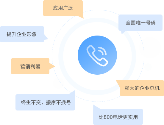 400號碼全國唯一、簡單易記,已經成為很多企業的標志,大大提升了企業形象,更有彩鈴、智能語音導航、錄音、語音信箱等強大功能,一個號碼即可打造大企業的虛擬呼叫中心。